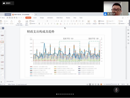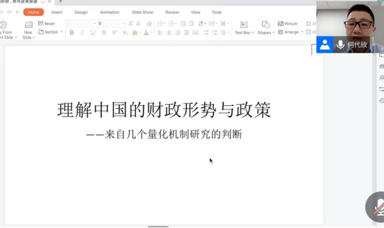 11月17日晚,中国社会科学院财经战略研究院财政研究室主任,中国社会科学院大学商学院副教授何代欣老师受邀作题为“理解中国的财政形势与政策—来自几个量化机制研究的判断”的专题讲座。本次讲座由浙江研究院执行院长童光辉老师主持,浙江研究院全体学生以及国内其他高校120余名师生以在线形式观看。