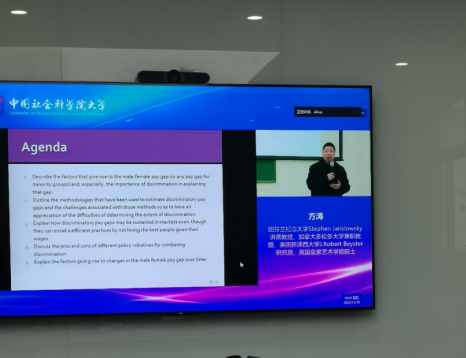 11月10日下午,方涛教授--纽芬兰纪念大学Stephen Jarislowsky讲席教授,加拿大多伦多大学兼职教授,美国新泽西大学J. Robert Beyster研究员,英国皇家艺术学院院士应邀作题为“男女工资差异和劳动力市场中的歧视现象:理论问题、实证研究与公共政策”的讲座,讲座由中国社会科学院大学副校长高文书教授主持,99直播