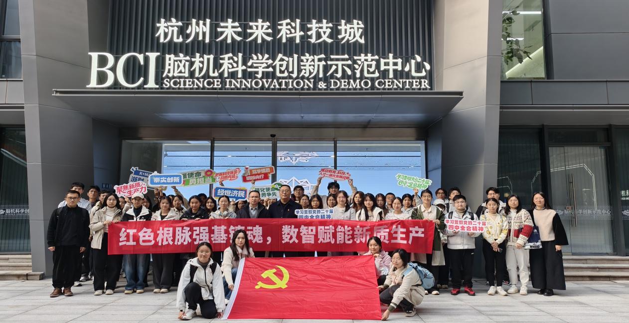 学院党委推动理论学习向实践场域延伸,让全会精神在科技前沿和产业一线焕发活力。11月25日,学院党委书记张成亮、文华创新学院执行院长叶舟带队,组织师生党员代表赴云深处科技、强脑科技两家前沿科技企业开展“红色根脉强基铸魂,数智赋能新质生产”主题党日活动。在云深处科技,企业负责人“争做新质生产力尖兵,在教育科技人才一体化中挺膺担当”的青春宣讲与师生们基于财经视角的犀利提问碰撞出思想火花;在强脑科技,智能仿生手挥毫写下“文研党委”的震撼场景,让脑机接口技术从概念变为可感的创新力量。这场“行走的党课”与“开放的课堂”,不仅深化了师生对教育、科技、人才一体化战略的理解,更激发了将专业所学融入国家科技自立自强的使命担当。与此同时,校内各班级结合实践见闻,广泛开展“青春宣讲”,实现了学习感悟与创新思考的全员分享、全面覆盖。