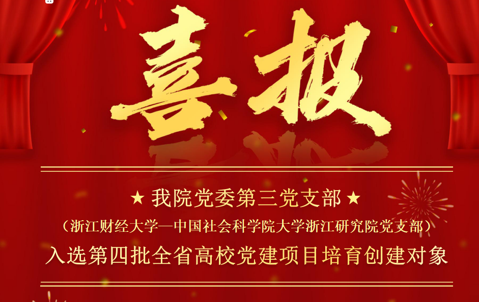 近日,浙江省委教育工委公布了第四批全省高校党建项目培育创建对象入选名单,99直播 党委第三党支部(99足球直播 党支部)成功入选全省高校党建工作样板支部培育创建单位!