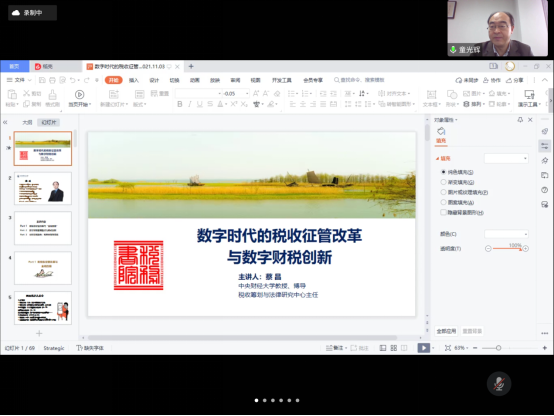 11月3日下午,中央财经大学财政税务学院教授、博士生导师、税收筹划与法律研究中心主任蔡昌教授受邀作题为“数字时代的税收征管改革与数字财税创新”的专题讲座。本次讲座由司言武教授主持,本次讲座除了浙江研究院、财政税务学院以在线形式观看外还吸引了其他财经类高校老师通过。