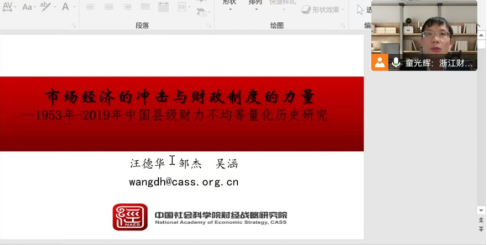 10月11日晚,中国社会科学院财经战略研究院研究员,财政审计研究室主任,中国社科院大学教授及博士生导师汪德华应邀做题为“市场经济的冲击与财政制度的力量——1953年-2019年中国县级财力不均等量化历史研究”的专题讲座。本讲座由浙江研究院执行院长童光辉副教授主持,来自全国各高校近300人以在线形式观看。