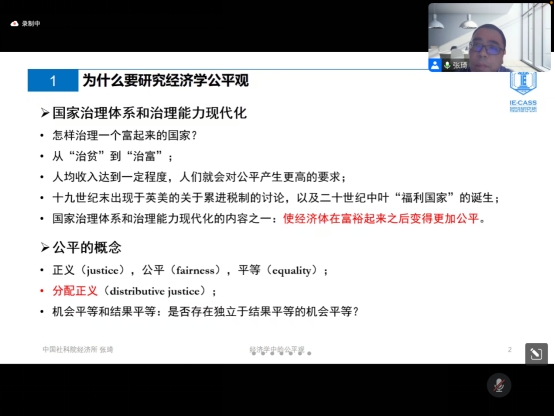 5月26日晚,中国社会科学院大学副教授、中国经济思想史研究室主任、中国社会科学院经济研究所副研究员张琦应邀作题为“经济学中的公平观”的专题讲座。本讲座由浙江研究院执行院长童光辉副教授主持,来自全国各高校百余人以在线形式观看。