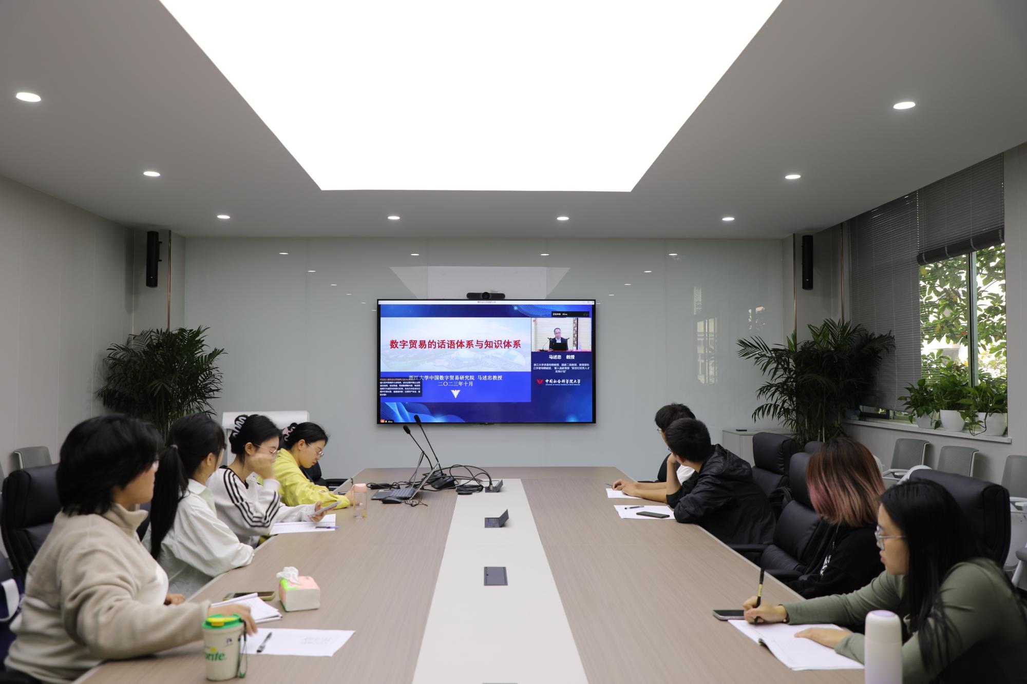 马述忠教授的专业分享让同学们对数字贸易的中国话语体系、自主知识体系、学术边际贡献有了更深的认识,拓宽了同学们的文化视野,营造了良好的学术氛围,为老师和同学们后期的学术研究指明方向,有利于学校学科交叉平台建设。
