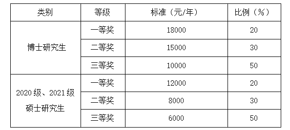 注:2020级硕士研究生中,法律(非法学)专业奖学金全额发放,其余专业奖学金减半发放。