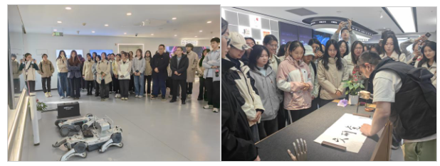 学院党委推动理论学习向实践场域延伸,让全会精神在科技前沿和产业一线焕发活力。11月25日,学院党委书记张成亮、文华创新学院执行院长叶舟带队,组织师生党员代表赴云深处科技、强脑科技两家前沿科技企业开展“红色根脉强基铸魂,数智赋能新质生产”主题党日活动。在云深处科技,企业负责人“争做新质生产力尖兵,在教育科技人才一体化中挺膺担当”的青春宣讲与师生们基于财经视角的犀利提问碰撞出思想火花;在强脑科技,智能仿生手挥毫写下“文研党委”的震撼场景,让脑机接口技术从概念变为可感的创新力量。这场“行走的党课”与“开放的课堂”,不仅深化了师生对教育、科技、人才一体化战略的理解,更激发了将专业所学融入国家科技自立自强的使命担当。与此同时,校内各班级结合实践见闻,广泛开展“青春宣讲”,实现了学习感悟与创新思考的全员分享、全面覆盖。