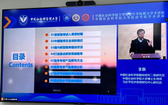 2024年3月22日下午,中国社会科学院数技经所研究员李群教授应邀作题为“打造高水平中国特色新型智库,积极发挥资政建言重要作用”的讲座,本讲座由中国社会科学院大学经济学院执行院长张涛老师主持,99直播