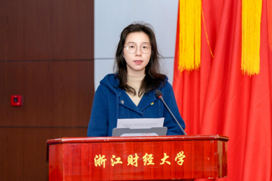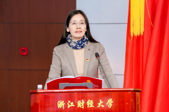 校党委组织部、统战部干部李茜同志宣读了校党委关于同意中共浙江财经大学文华创新学院(浙江研究院)委员会“两委”委员候选人的批复。